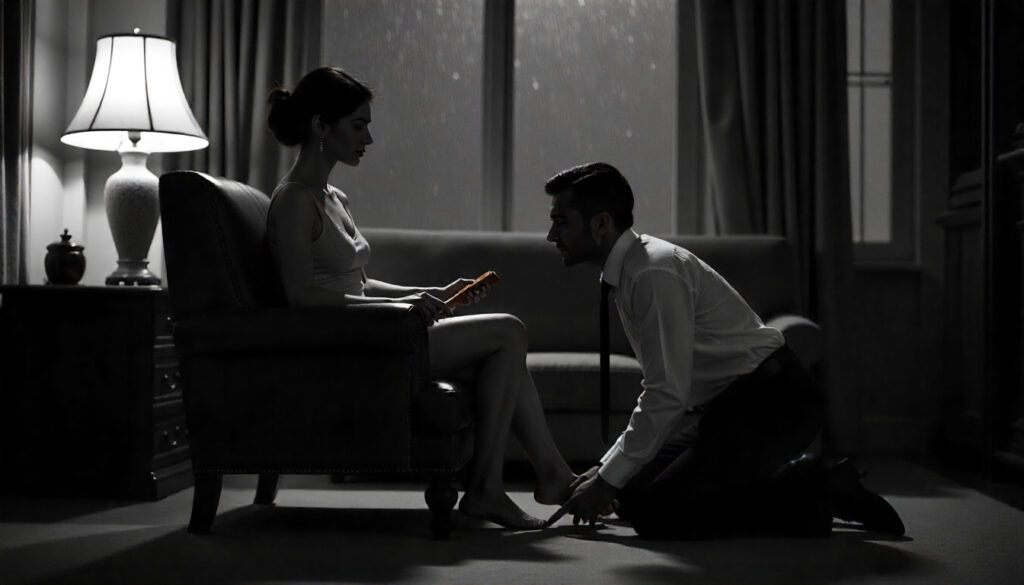 One night I found a private ad. Not an agency. Not a pro-domme with a menu. Just a woman. Thirty-six. Married herself. Looking for one obedient male who understood that real discipline isn’t play. Her name was Rebecca. The photo showed only her hand resting on a wooden hairbrush. That was enough. My cock leaked the second the page loaded.