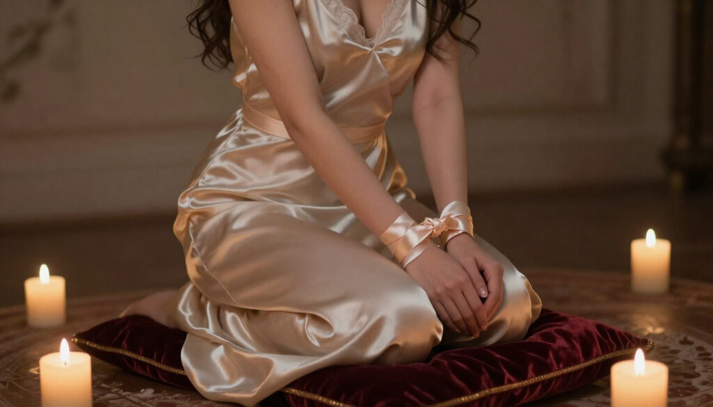 Over time, it grew into this ritual we built together, layer by layer. It wasn’t about rushing into the bedroom; no, the anticipation was everything. He’d text me in the middle of the day: “Prepare.” Just that one word, and my body would respond before my mind caught up—a flush of heat, a tightening in my core, that delicious ache of surrender building like a storm on the horizon. I’d spend hours getting ready, not just physically but mentally. Shaving every inch until my skin was silk-smooth, choosing lingerie that whispered submission—black lace that hugged my curves, leaving me exposed in all the ways that made me vulnerable. I’d light candles, dim the lights, arrange the tools of our trade: soft leather cuffs for bondage, a silk blindfold that smelled faintly of his cologne from the last time, a crop that promised discipline without ever needing to explain itself.
