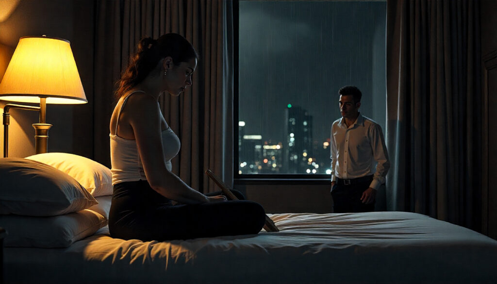 Friday night, room 1218. I stood outside the door sweating bullets in December. The door cracked open, a manicured hand snatched my tie, and I was inside before I could breathe.