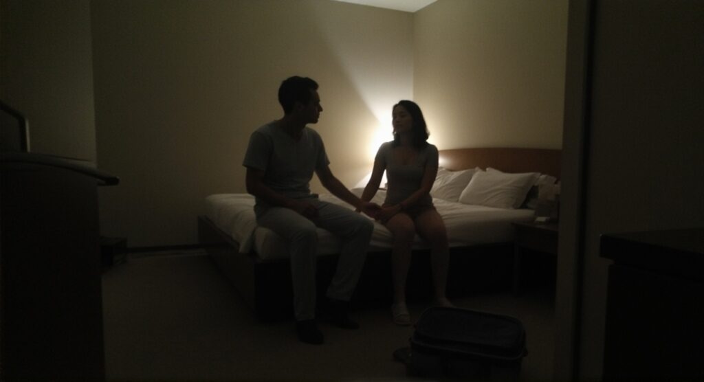 Lucia closed the door behind us. The click of the latch was the loudest sound I’d ever heard. The room was dark, save for a single lamp on the nightstand. She didn’t turn to face me right away. She stood with her back to me, her shoulders rising and falling with each breath.